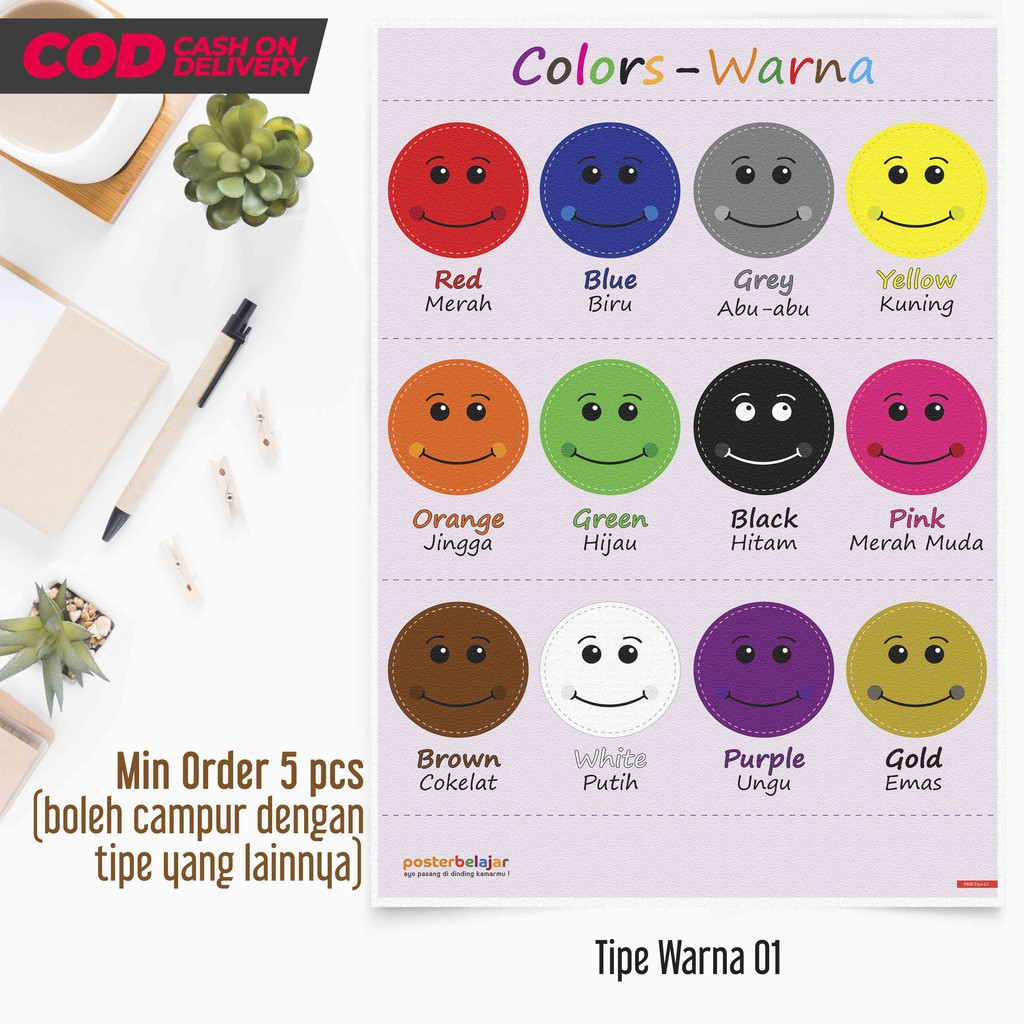 TIPE 01 Poster Pendidikan Belajar Mengenal Jenis WARNA Dalam Bahasa from shopee.co.id